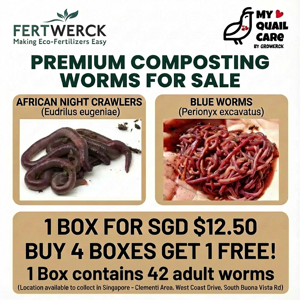 ✅ FAST, FREE LOCAL PICKUP – Get your worms after 48 hours and conveniently collect your order in (Singapore) Clementi, West Coast Drive, or South Buona Vista Road , 24 hours thereafter