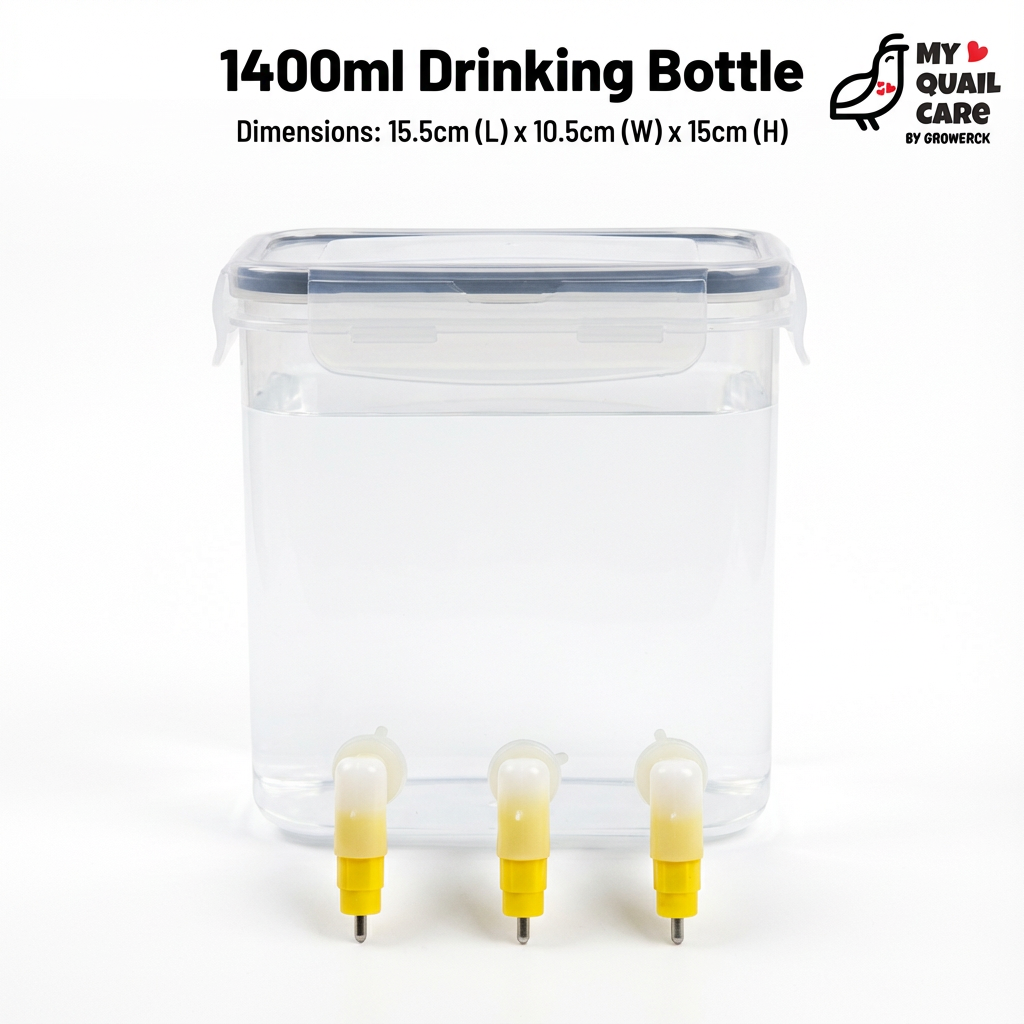 1400ml (27×10.5×30 cm) for larger flocks or cages where quail lovers wish to have lesser refills.